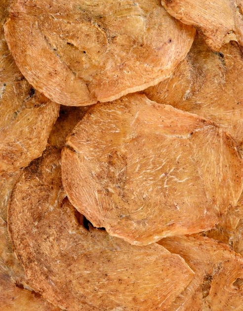 Тонко нарізані скибочки курячого філе проходять делікатне сушіння, зберігаючи природну соковитість і водночас набуваючи приємної хрусткої текстури. Часник додає яскравого характеру смаку — пікантного, глибокого та трохи пряного, який чудово розкривається з кожним шматочком.