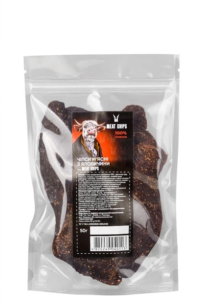 Чипси м’ясні з яловичини Meat Chips — це ідеальне поєднання натуральності, смаку та зручності. В основі продукту — добірна яловичина, тонко нарізана та висушена за спеціальною технологією, яка дозволяє зберегти максимум смаку та аромату м’яса.