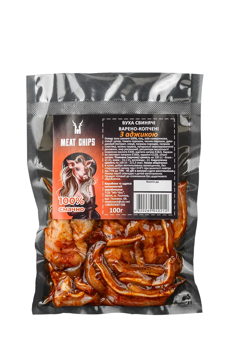 Вуха свинячі в/к з аджикою 100г ТМ Meat Chips